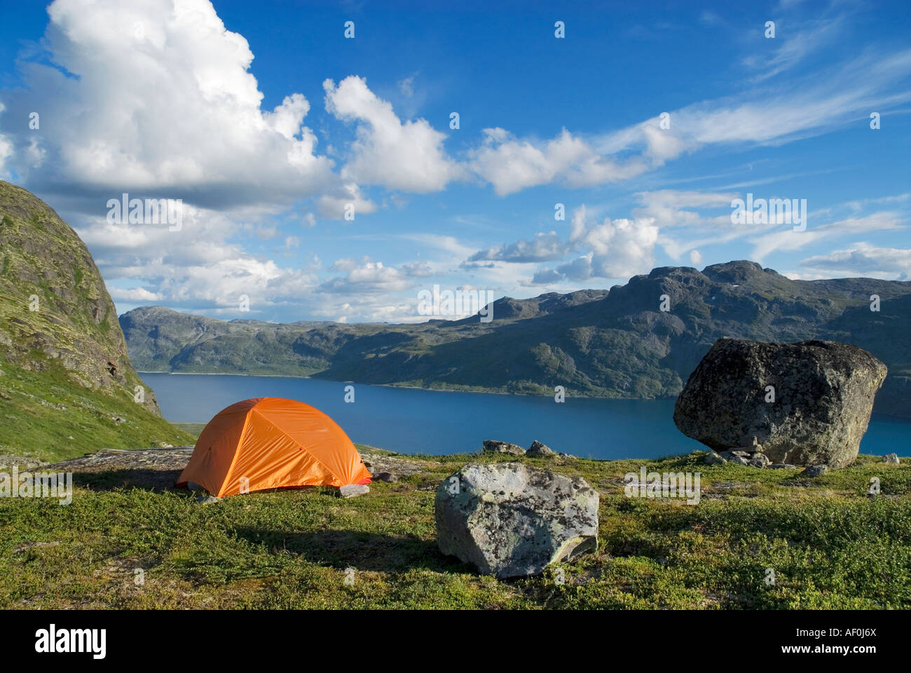 Solo Einzelperson Wandern Zelt Im Camp Uber See Bygdin In Bergen Oder Nationalpark Jotunheimen Norwegen Stockfotografie Alamy