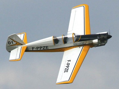 Uses a foam core wing with obechi veneer. Engine Glow 65 - 85cc Control 4 channels. It is a two seat tandem configuration tail dragger with a low wing and retractable gear.